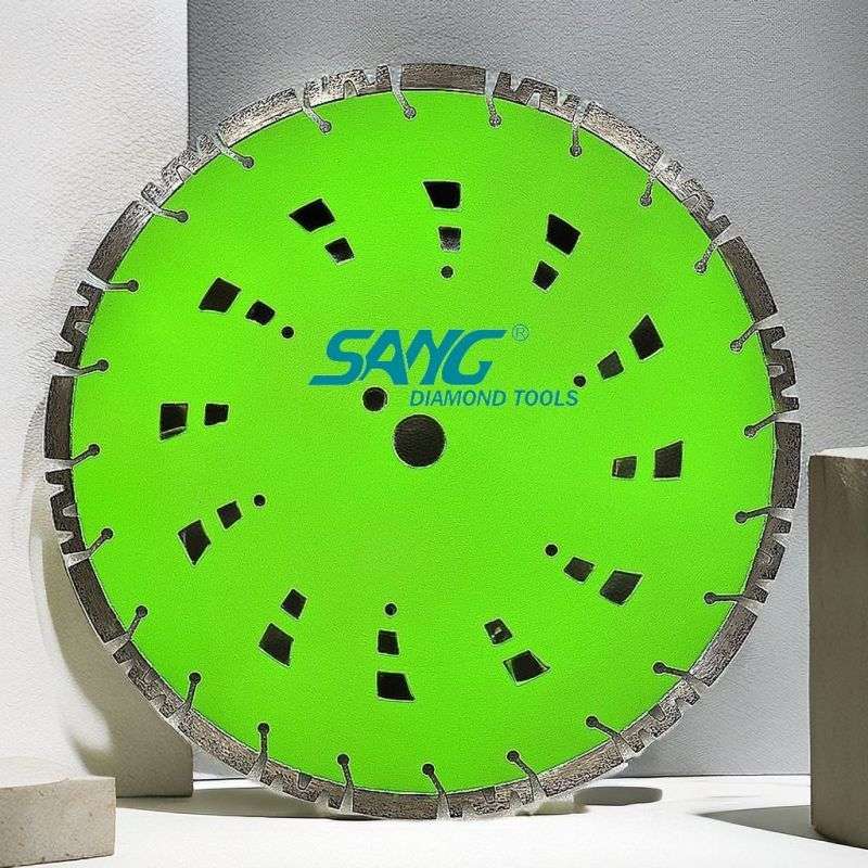 Segmentowane konstrukcja ostrzy: Dysk tnący został zaprojektowany z segmentowanymi ostrzami, z równomiernie rozmieszczonymi segmentami diamentowymi wzdłuż krawędzi. Ta segmentowana konstrukcja zwiększa wydajność cięcia i ułatwia usuwanie gruzu, zapewniając gładkie i szybkie przecinanie różnych powierzchni betonowych.