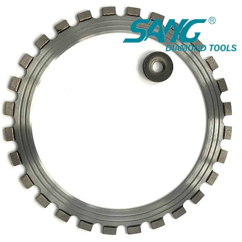 Zastosowanie piły pierścieniowej: Ostrze do cięcia jest specjalnie zaprojektowane do użycia z ręcznymi piatami pierścieniowymi. Piły pierścieniowe są kompaktowe i wszechstronne narzędzia tnące, które wykorzystują okrągłe diamentowe ostrze z ciągłą pętlą segmentów cięcia. Są one powszechnie używane do głębokiego i precyzyjnego cięcia w różnych materiałach, w tym betonie, murze i kamieniu.